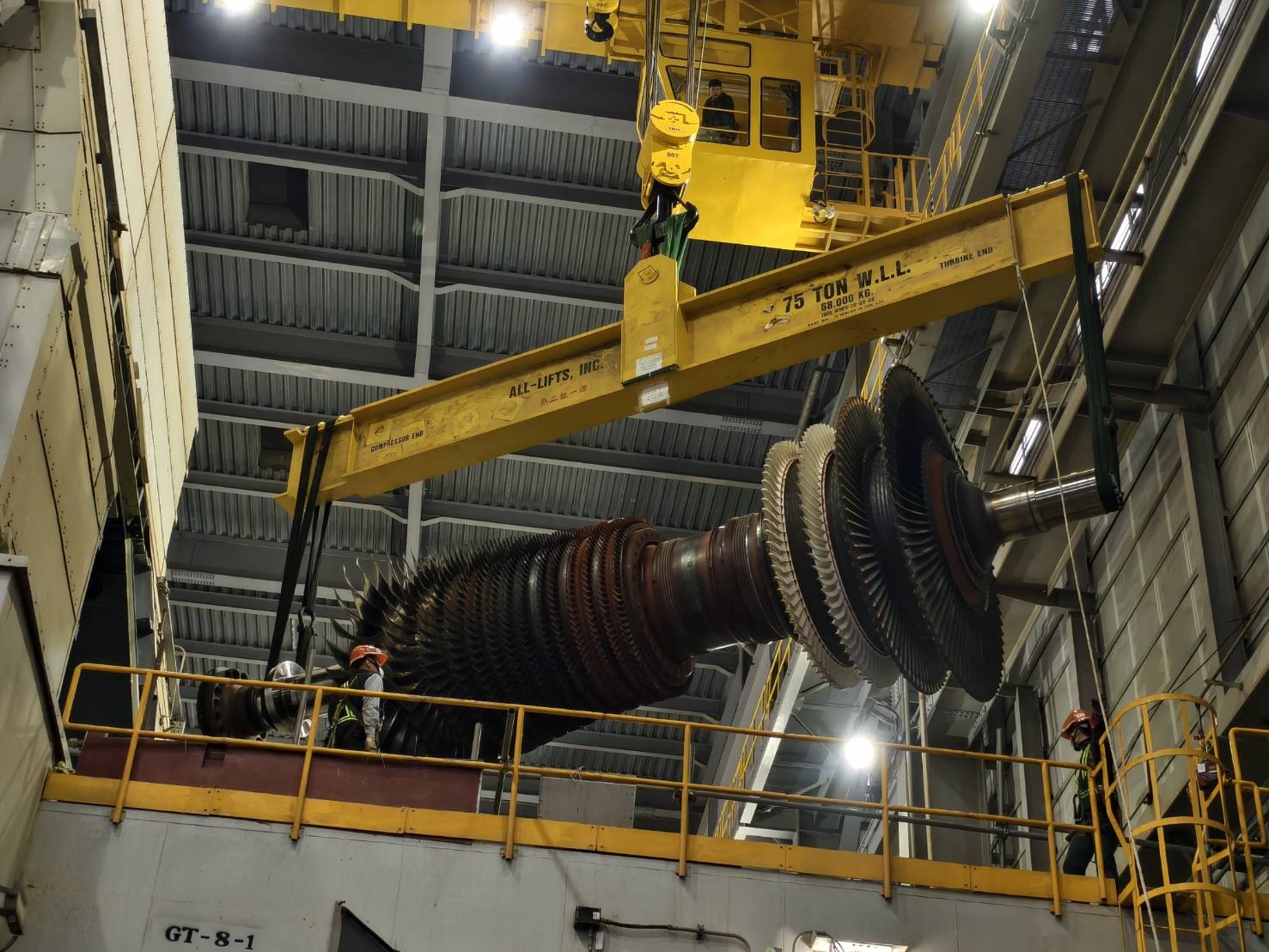 其中,大潭電廠燃氣8號機為2部氣渦輪機組搭配1部汽力機組發電的複循環發電機組,台電今年共動員超過200名人力展開為期超過3個月的保固大修,也是自2024年運轉後首次進行開蓋檢查工作。不僅將如「機組心臟」的氣渦輪及汽輪機轉子整個吊出檢查,另外軸承與動、靜葉片和各式關鍵性熱元件也進行相關非破壞檢測,完整檢視新機組運轉1年後的組件強韌狀況。經過本次保固大修,機組將持續提供我國穩定低碳之高效能電力。